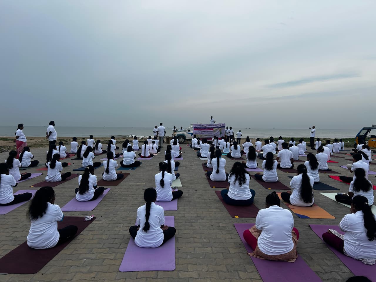On the occasion of INTERNATIONAL YOGA DAY -2025 around 100 students and 4 faculties from SAHS, Puducherry campus have actively participated in the Yoga Mass Demonstration Programe under the theme of yoga for one Earth , One Health on 21 June 2025 at PALMYRA BEACH, Puducherry. The Programme was coordinated by SAHS Puducherry Campus faculties.