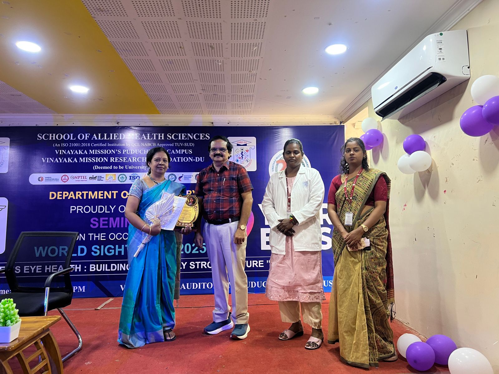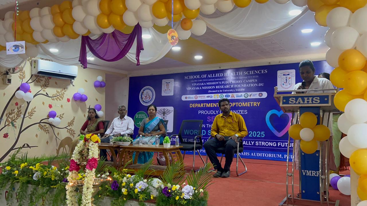 On the occasion of World Sight Day 2025, the Department of OptometrySchool of Allied Health Sciences, Puducherry Campus,y VMRF-DU organized a seminar based on the theme "Love Your Eyes" at the SAHS Auditorium, Puducherry.