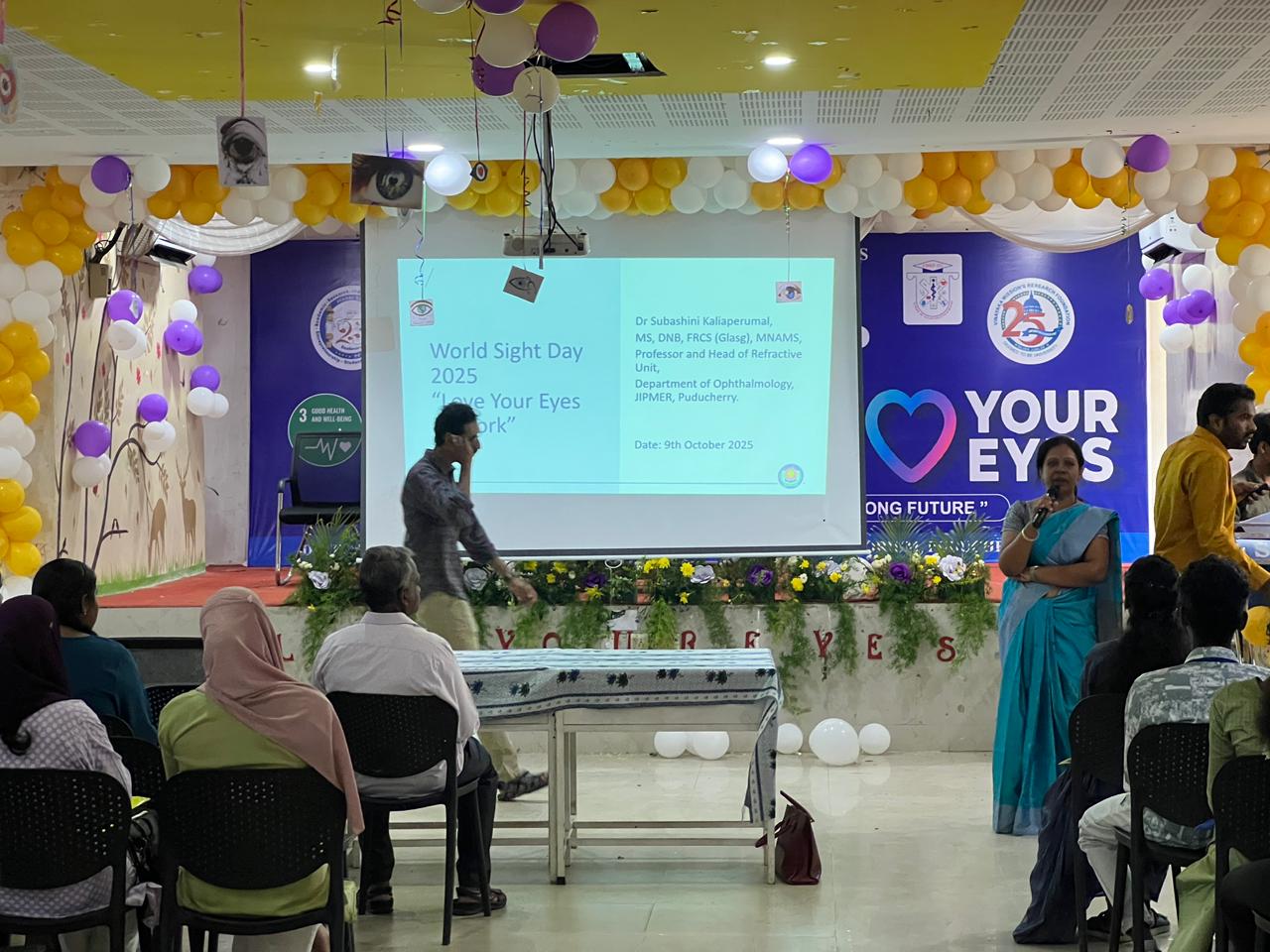 Dr. Subashini Kaliaperumal, Professor, Department of Ophthalmology, JIPMER – Puducherry, who delivered an insightful talk on the theme "Love Your Eyes", focusing on the importance of early detection and regular eye check-ups.